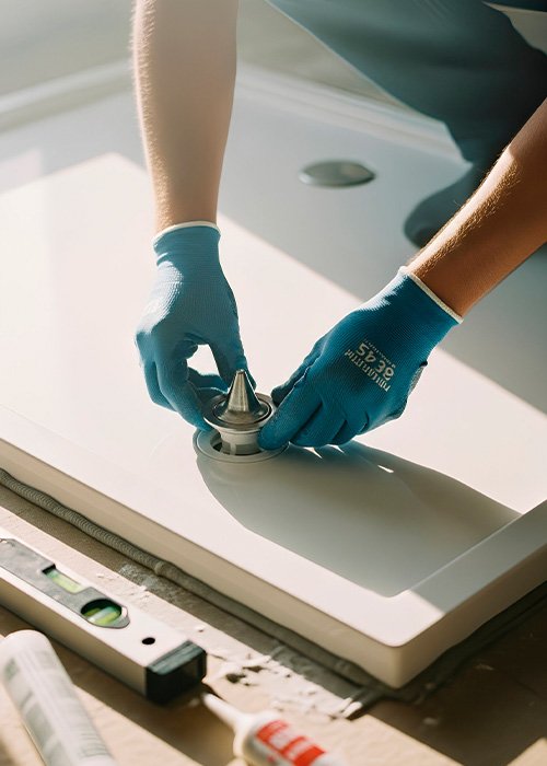- Plato de ducha (o bañera), mampara y sellados de estanqueidad.